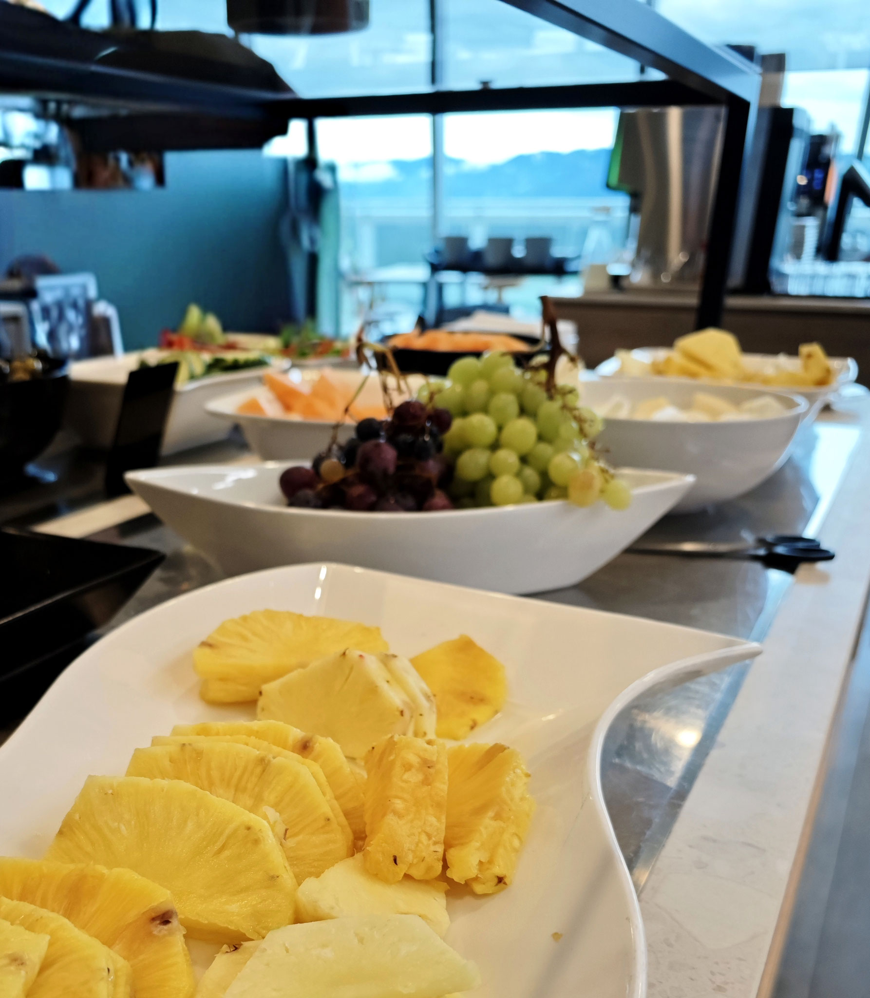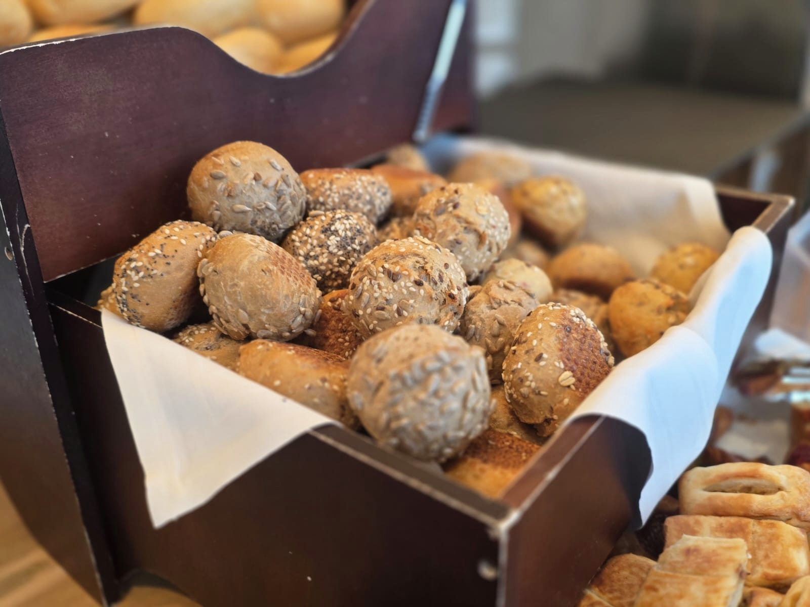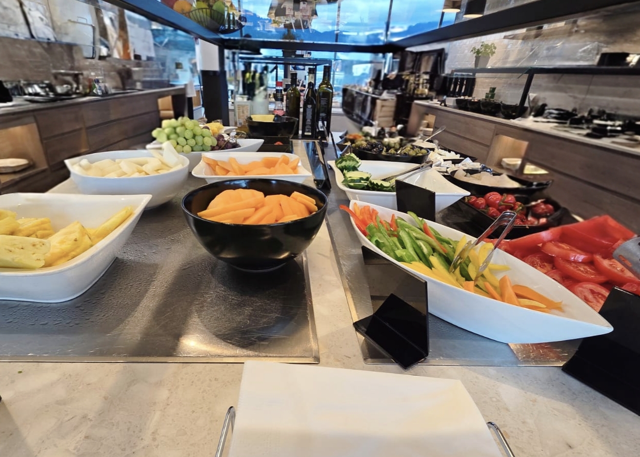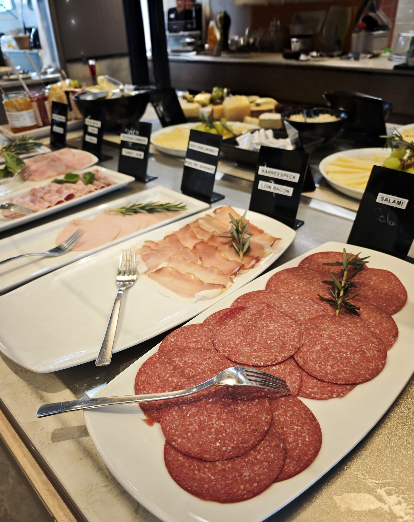 The buffet they offer is great. There is a bread and pastry station, fresh fruits and juices, cereals, hot dishes, cold cuts and cheese and many more. The presentation is done with attention