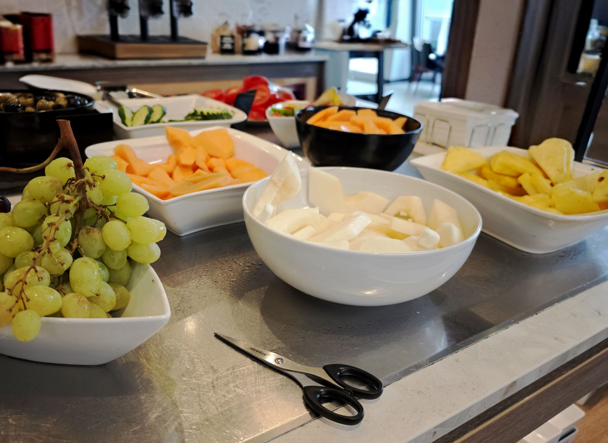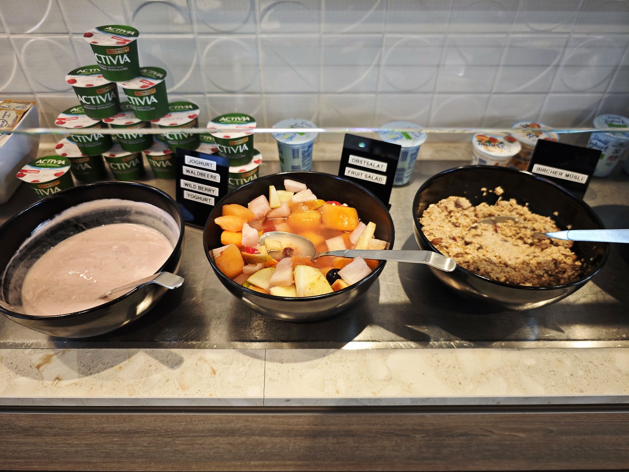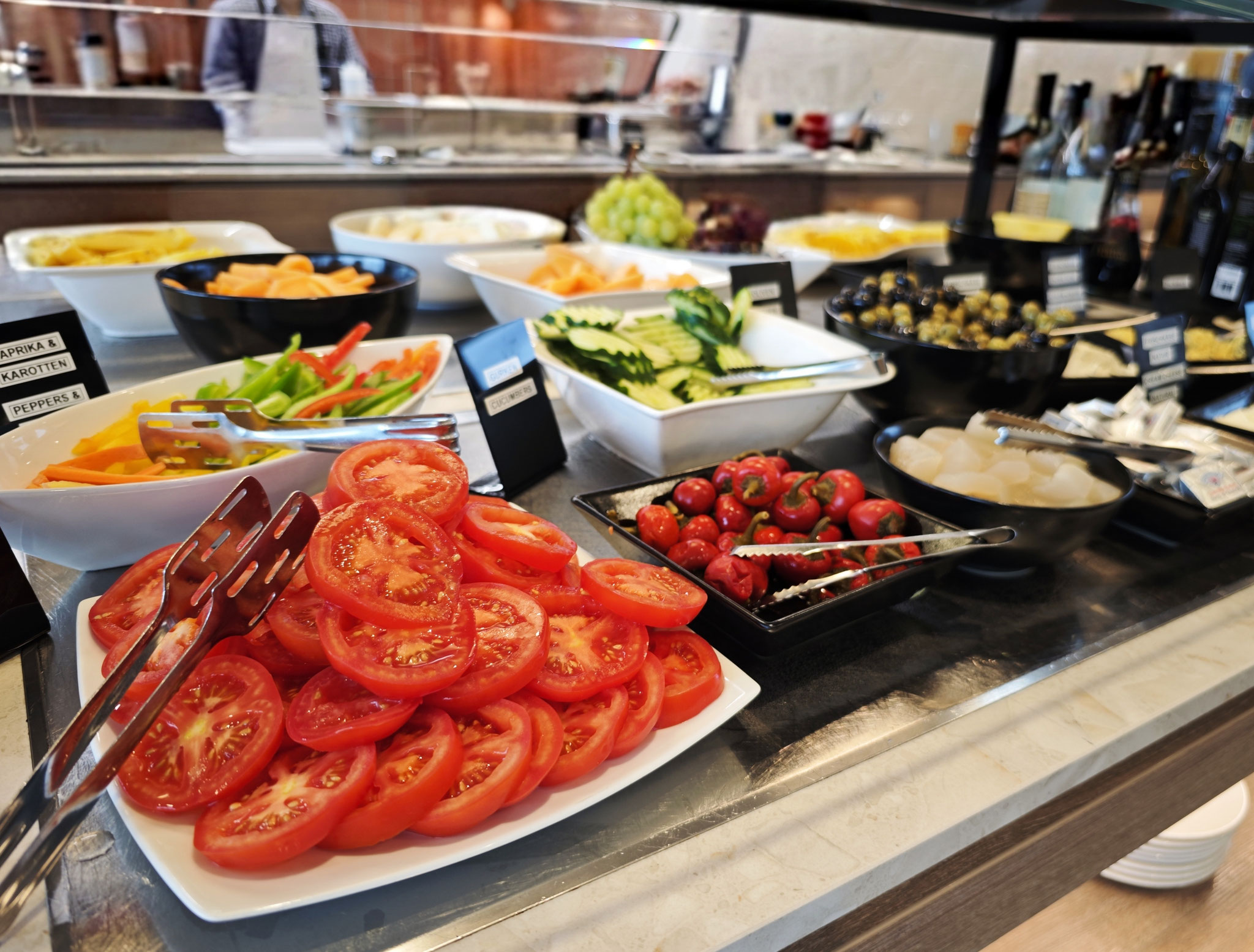 The buffet they offer is great. There is a bread and pastry station, fresh fruits and juices, cereals, hot dishes, cold cuts and cheese and many more. The presentation is done with attention