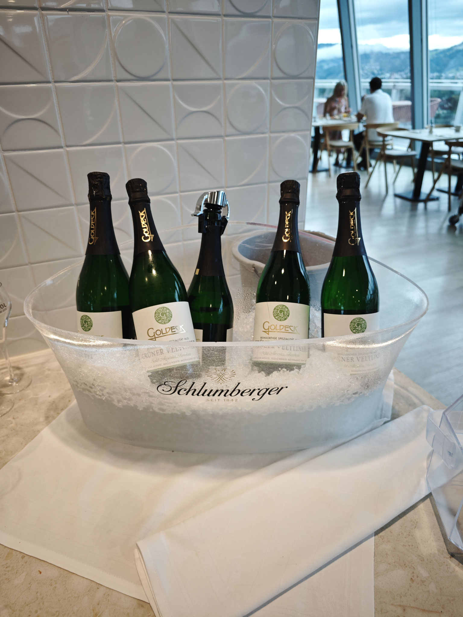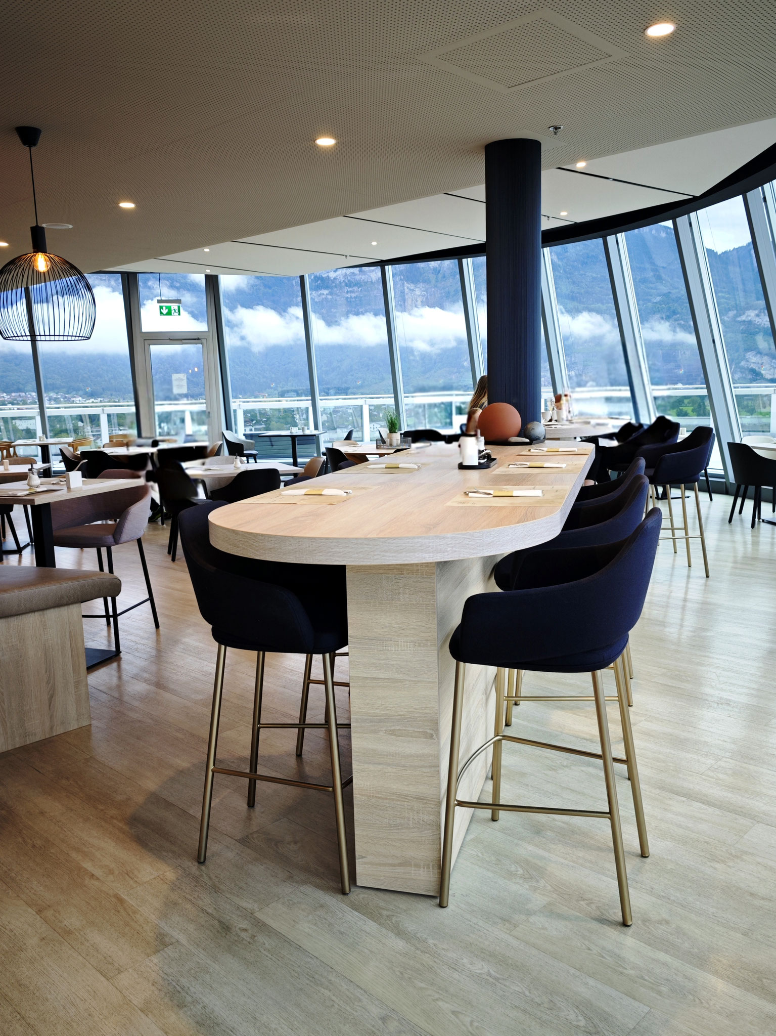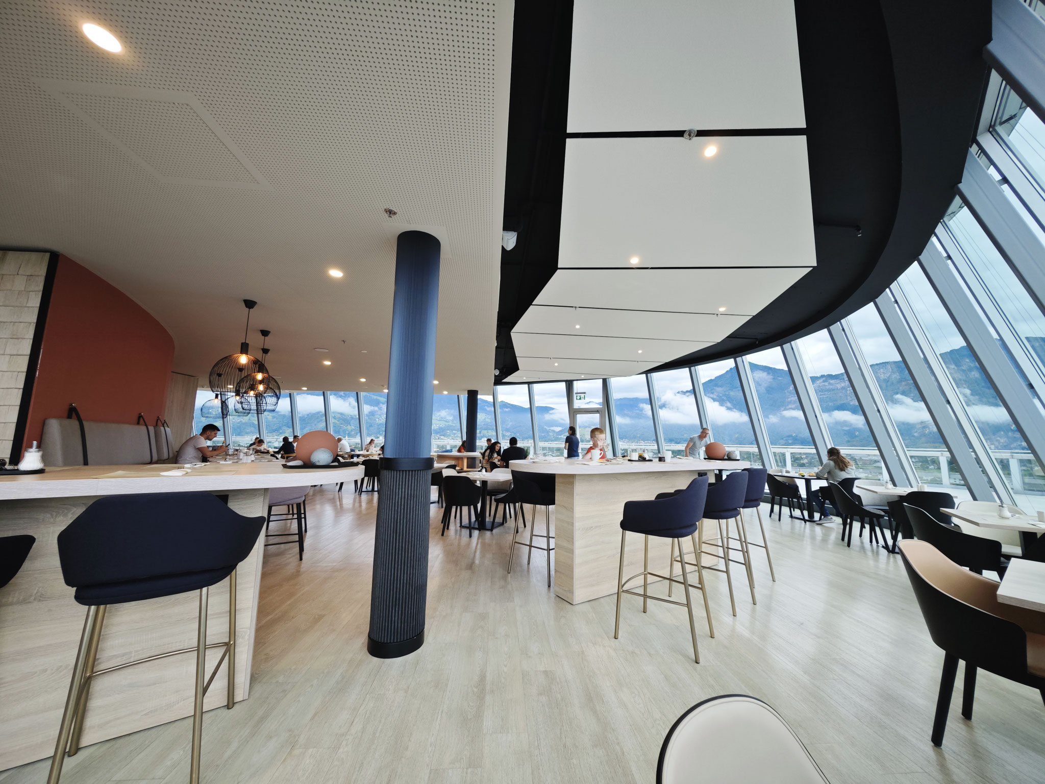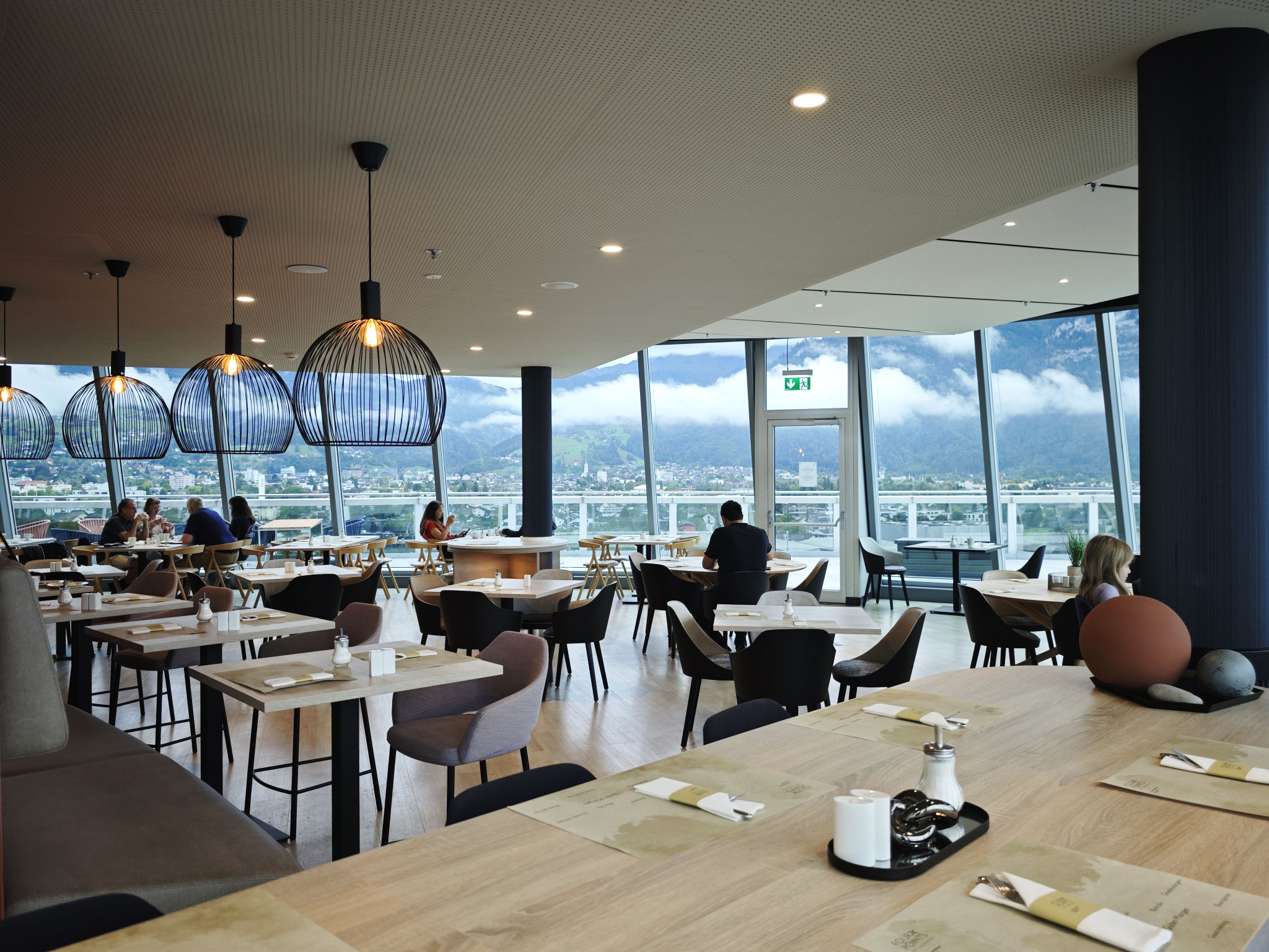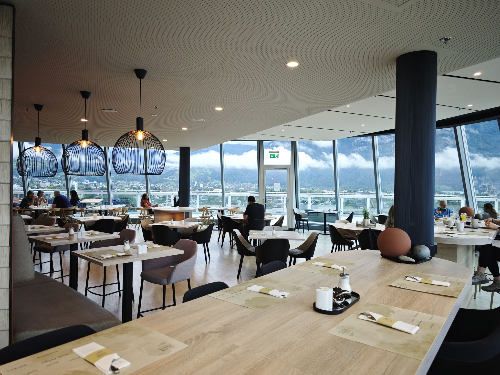 The restaurant up there feels more like on a cruise ship with the stunning view over the valley and the mountains.