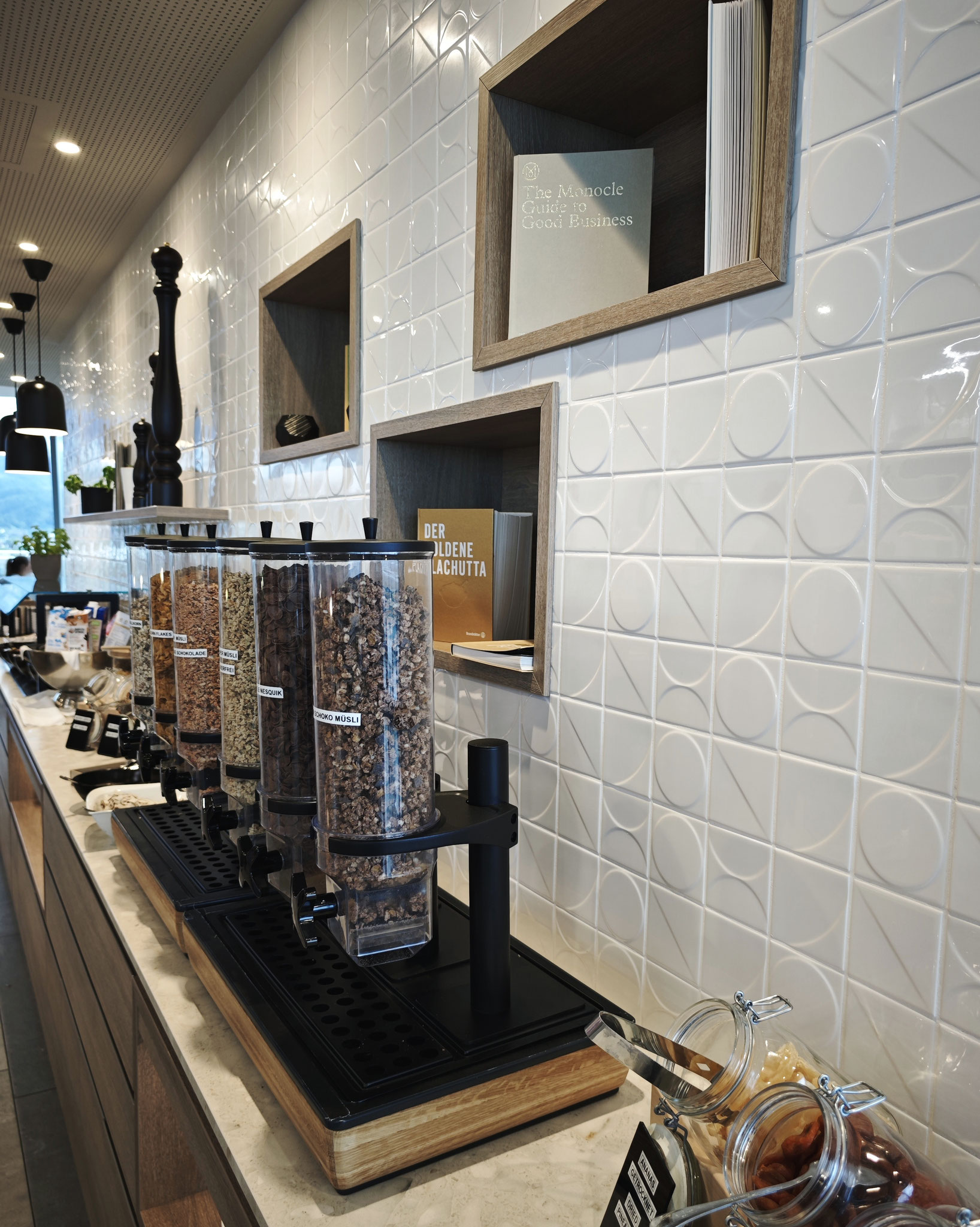The interior is super nice and modern. There is a lot of wood and very bright colors to give the restaurant and bar a welcoming atmosphere. The hotel has integrated some amazing new features